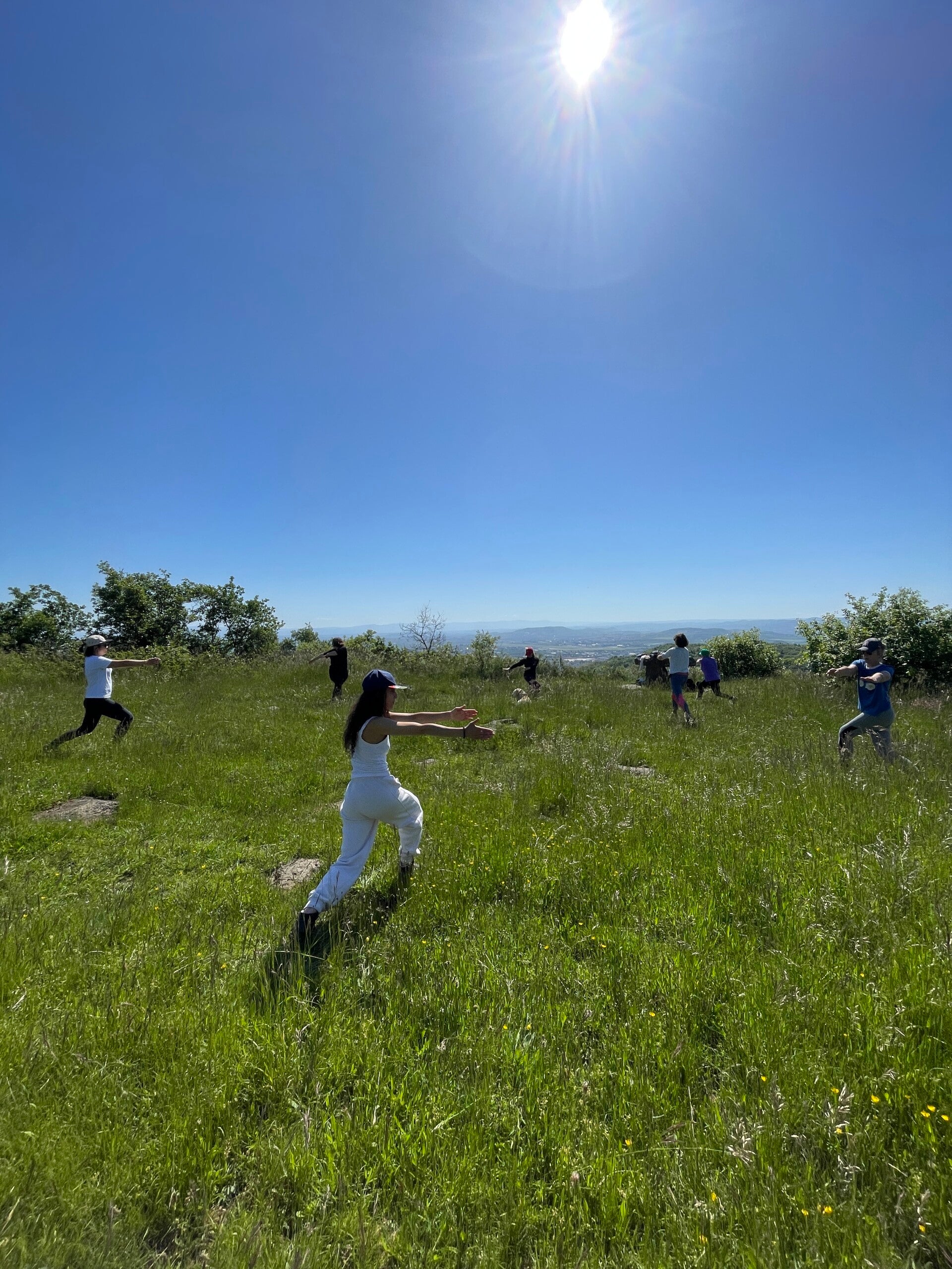 c'est de faire une petite balade à pieds, accessible, de se poser au milieu pour des une belle séance de Pilates en pleine nature de 40 minutes et de repartir.