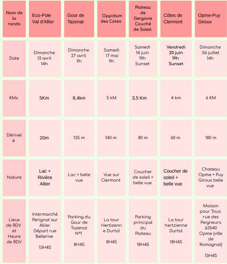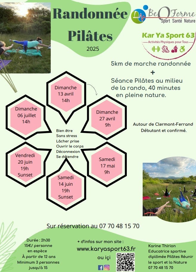 Voici les lieux et dates de chaque randonnées Pilates =)