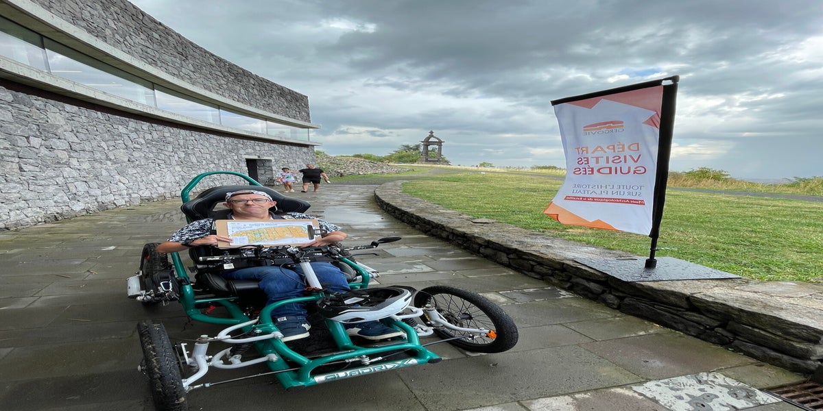 Balade avec 1 seul Quadrix ! Les personnes qui suivent sont avec leurs VTTs (ou si besoin, un VTT électrique prêté par l'association HandiTouTerrain)